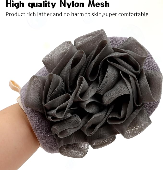 3 Pack Bath Loofah Body Sponge Brushes Loofah Exfoliating Glove Bath Shower Glove with Flower Bath Ball Bath Shower Loofah Sponge for Women and Men (Gray)