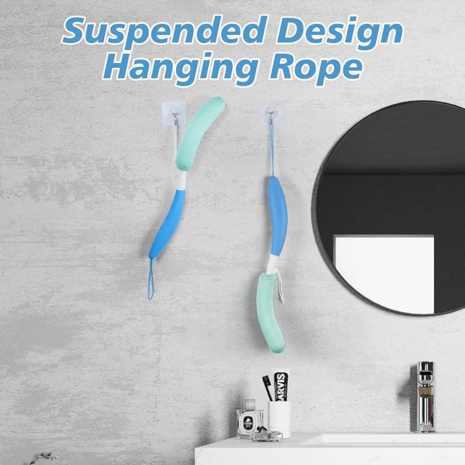 - 【Ergonomic Handle Design】The curved handle of the shower back brush is ergonomic, and can easily reach and clean your back, hands, lower legs, feet and other hard-to-reach parts without bending over to clean. Back brush features a textured plastic handle that provides a comfortable, firm grip even in wet conditions. You can also easily hold the handle when you apply body wash in the shower.