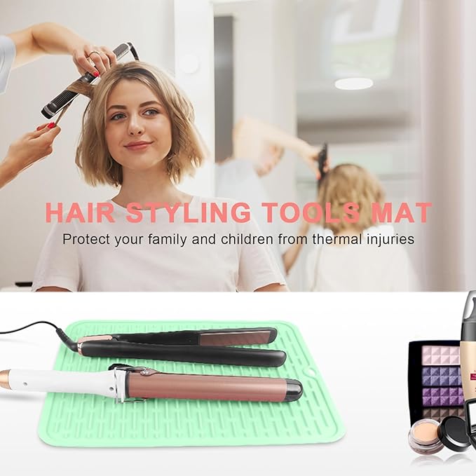 - Anti-Scald Protection: This silicone mat for hair tools is used for curling irons, flat irons, hair straighteners, curling tongs, hair crimper, blow dryers and other hair styling tools to protect your counter or furniture from heat damage; It also protects other items from burns