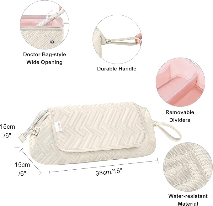 - Practical Design:Doctor bag-style wide opening lets you access to things quickly. The carrying case with well-padded soft interior and middle partition design, which prevent hair curler wand and hair dryer set from bumps, scratches or other physical damage. One large zipper pocket and 2 clear pockets to keep your hair accessories, etc.
