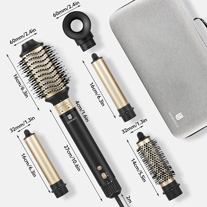 WeBeauty 5-in-1 High-Speed Hair Dryer Brush with Protective Hard Case, Hot Air Styler & Air Curling Iron, Ionic Fast-Dry Blow Dryer, Volumizer & Straightener (Black)