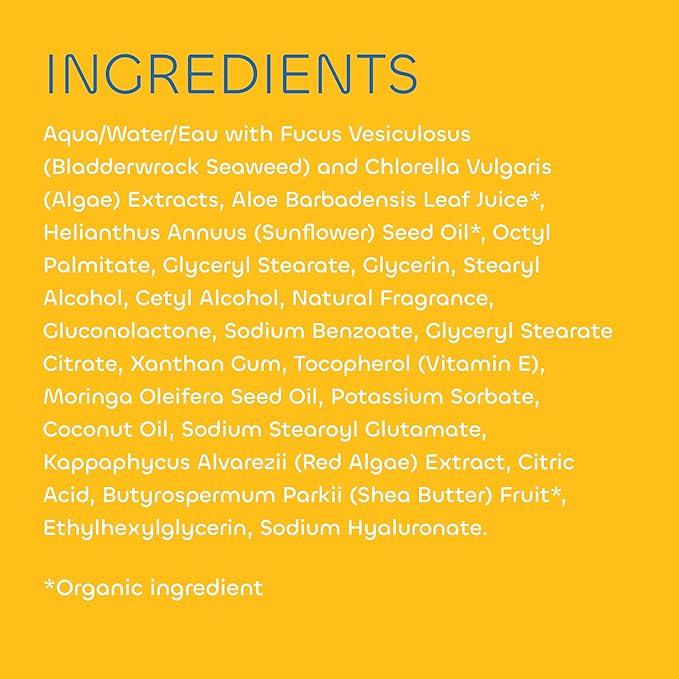 - All Day Hydration: With nutrient-rich Red Algae, restoring Moringa Oil and softening Shea Butter, our daily lotion quickly soaks in for healthier-looking skin without a greasy feeling