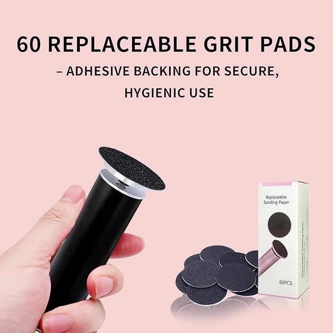 - 【60 Replaceable Sandpaper Discs for Long-Term Hygiene】:Comes with 60 premium sandpaper discs to ensure long-lasting, hygienic use. Easily replace old discs for a consistently clean and effective pedicure routine – no mess, no fuss.