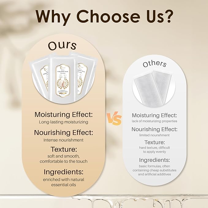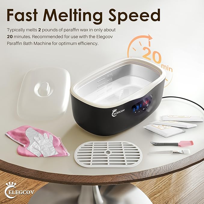 - Easy to Use with Any Paraffin Bath: These unscent paraffin wax refills are seamlessly compatible with most paraffin wax baths, especially when paired with the use of our Elegcov's paraffin wax machine, which melts evenly and quickly, ensuring a spa-like experience at home
