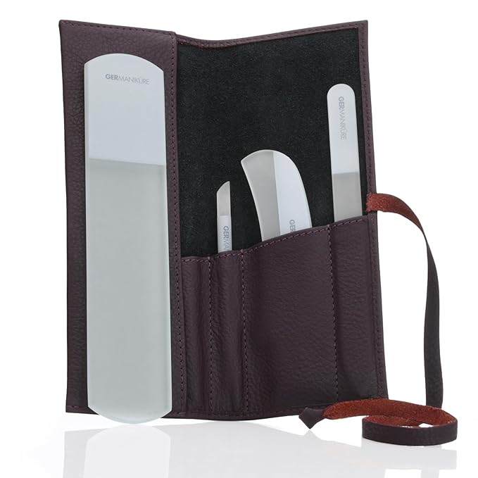 4pcs Manicure Set Genuine Czech Crystal Gray Glass Nail File Moon File Manicure Stick Pedicure Foot Care Bar in Purple Leather by GERmanikure