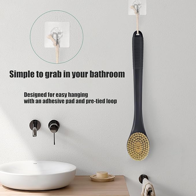 - Free Hanging Hook Included: We’ve included a handy hook that lets you hang your brush after use. This helps the back brush for shower dry quickly, keeping it clean and hygienic. It also keeps your bathroom neat and organized.