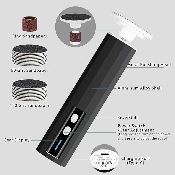 - 【3 Types of Sanding Discs】Garimus foot sander comes with 30 replaceable sandpapers, which are self-adhesive and easy to remove. It contains 3 types, 10 sheets of 120-grit fine sandpaper for minor dead skin, daily foot care;10 sheets of 80-grit coarse sandpaper for long-term calluses;ring sandpaper*10 for hand care.