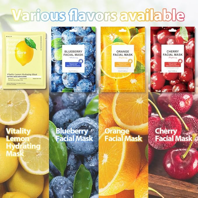 - 【12 Plant/Fruit Set】 Crafted from the finest natural ingredients, Aloe Vera, Pomegranate, Honey, Peach, Strawberry, Avocado, Apple, Coconut, Lemon, Blueberry, Orange, Cherry, each component is carefully selected for its efficacy and compatibility with all skin types