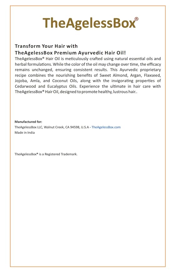 The Ageless Box Ayurvedic Hair Oil Serum – Reduces Hair Fall, Tames Frizz & Curls, Strengthens Roots & Supports Hair Growth – Amla, Argan, Bhringraj & Rosemary Blend – Vegan, Cruelty-Free – 50ml