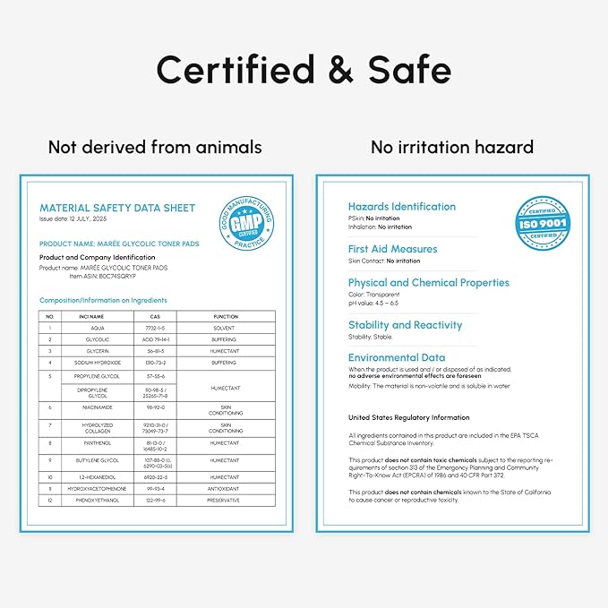 - Deep Effect - MARÉE exfoliating pads for face cleanse and renew your skin & unclog pores. Our Glycolic Acid peel pads facial also boost collagen production.
