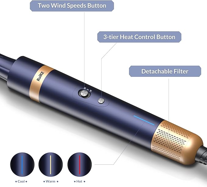 - Fast Drying: 110,000 RPM brushless motor delivers 26 m/s airflow (5x faster than traditional dryers). 3 heat settings (Cool/Warm/Hot) for wet-to-dry styling in minutes.