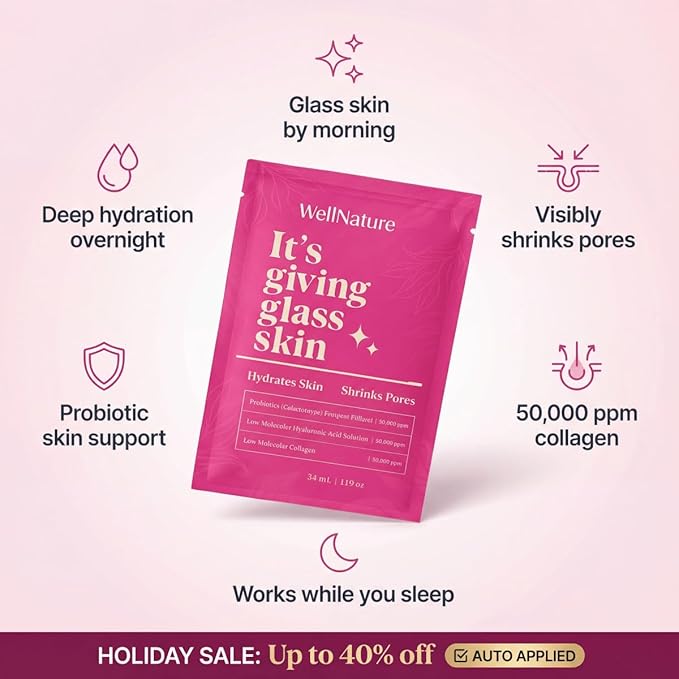 Wellnature™ The Original Overnight Deep Collagen Mask - It's Giving Glass Skin Sleep Mask - Deep Hydrating Bio-Collagen + Oligo-Hyaluronic Acid Facemask - Skincare For All Skin Types, Pack of 4