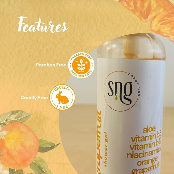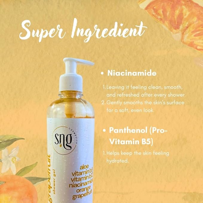 Orange & Grapefruit Body Wash for Women & Men 16.9 fl oz – Hydrating Shower Gel with Aloe Vera, Vitamin E, Niacinamide & Panthenol – Moisturizing, Paraben-Free, Cruelty-Free