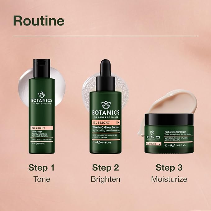 Botanics All Bright Glow Toner for Face - Enriched with Hibiscus AHA Exfoliant & Soap Bark - Non-Drying & Brightening - Vegan and Cruelty-Free Face Toner for Women & Men (8.4 Fl Oz)