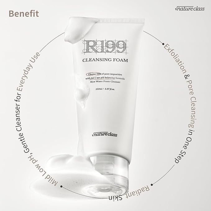 R199 Rice Enzyme Cleansing Foam – Deep Cleanser for Sensitive Skin, Blackhead & Pore Care, Double Cleansing, Aloe & Hyaluronic Acid, Korean Skin Care, Fragrance Free, 5.07 fl oz