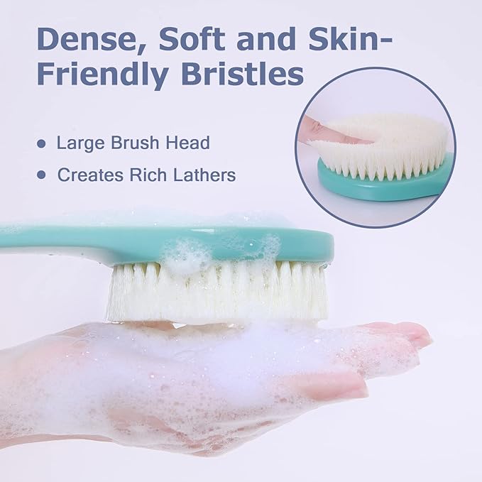 - MODERATE BRISTLES: When designing this bath brush, we tested many kinds of bristles, and selected these moderate and durable bristles in the end. They are excellent bristles that can be generally accepted by most people. Due to storage and transportation, the bristles may be out of shape a bit when you receive the brush, you can use a blower to bring them back into their approximate shape.