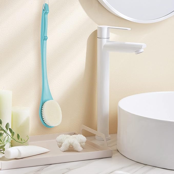 - SMOOTH GLOWING SKIN: Use exfoliating shower brush to remove your dead skin cells, unclog your pores and refresh your skin, so your skin can absorb moisture better and look plumper and less wrinkly, meanwhile, enhance blood circulation and lymphatic flow, and rejuvenate your body.