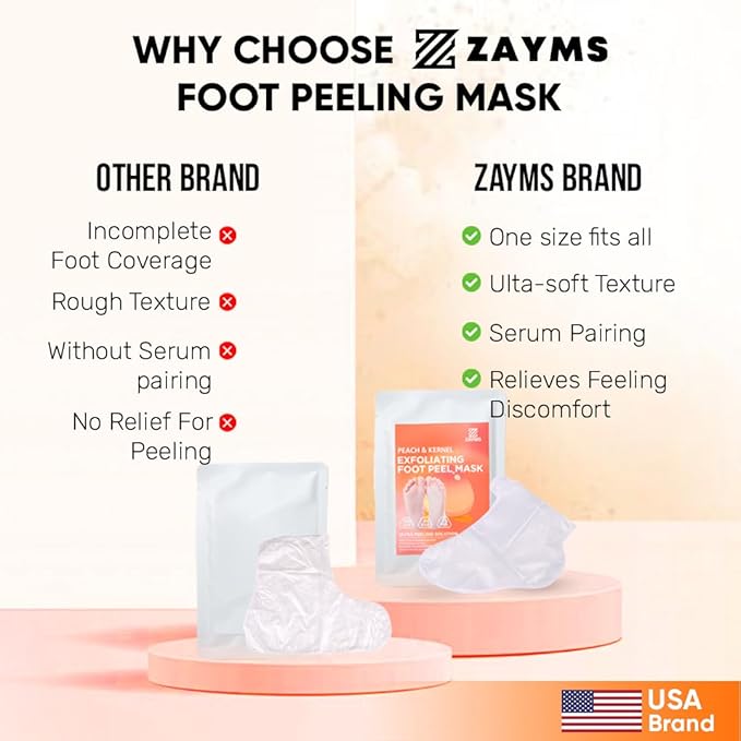 - Natural Ingredient Foot Peel Mask: Enriched with peach kernel extract and plant-based acids, this foot peel mask works as an effective foot mask to peel off dead skin.