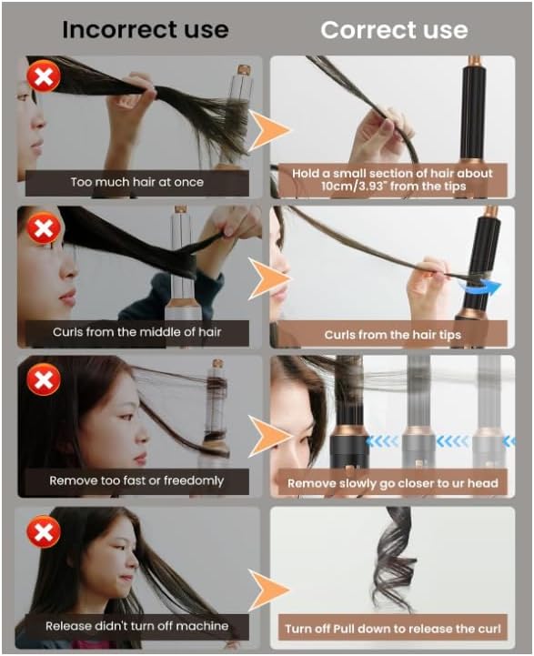 - All-in-One Hair Styling Tool for Versatile Looks: Transform your hair routine with this multi-functional hair styler. It comes with 7 removable accessories, including an air curler for hair, curling brush, straightening comb, diffuser and more. Whether you want to curl, straighten, blow-dry, or add volume, this hair styling tool does it all. Say goodbye to cluttered countertops and hello to a single device that meets all your styling needs.