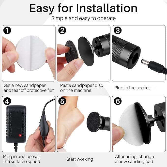 - Easy to Clean: Comes with Includes 60 replacement sandpaper discs+12 pcs Nail scrub rings, making it simple to apply and remove for a hygienic experience. After each use, the device is effortless to clean, ensuring it stays sanitary and ready for your next foot care session!