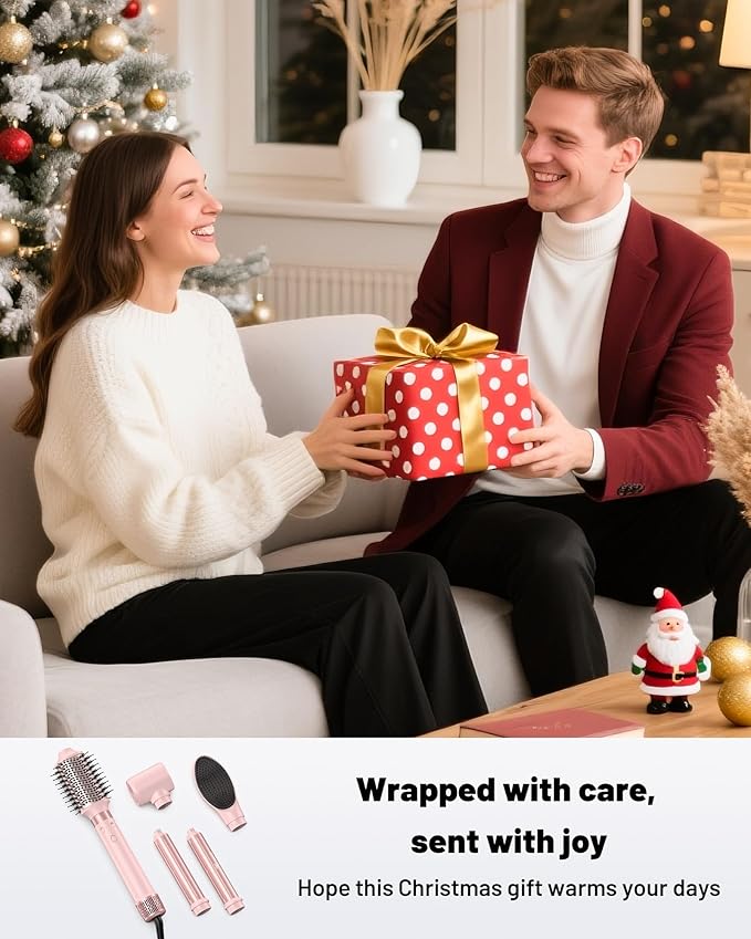 - Wrapped with Care, Sent withJoy—A Christmas Gift that Blends Practicality and Elegance: the MESCOMB 5-in-1 Dual Voltage Hair Dryer Brush. Tailored for international travelers, it boasts universal 100V-240V dual voltage, compatible with over 150 countries (U.S., Europe, Asia, etc.)—no voltage converter required, just instant use. This professional hot air styler delivers salon-quality hairstyles worldwide, with intuitive operation: "-" for power and hot air temperature adjustment, "*" for cold air. A timeless gift for the discerning globetrotter.