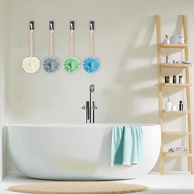 8 Pack Large Bath Puff Loofah Sponge with Long Handle Shower Loofah, Bath Body Back Brush