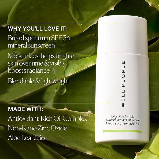 Well People Daygleamer Mineral Sunscreen Serum SPF 34, Blendable Formula with Vitamin C & Niacinamide Hydrates Skin and Delivers Broad-Spectrum Protection, Vegan & Cruelty Free, 1.7 Oz