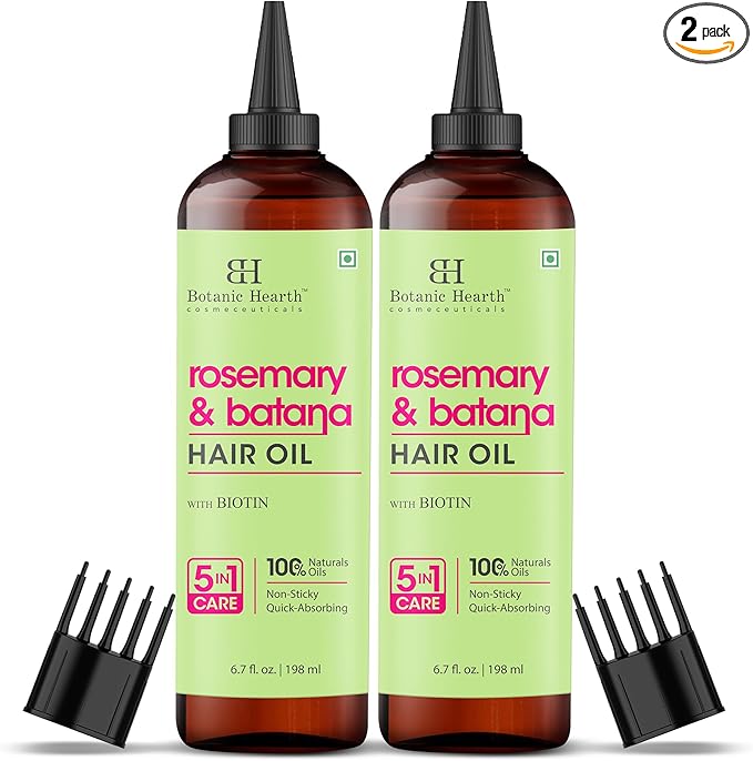 Botanic Hearth 100% Pure Rosemary Batana Oil for Hair Growth | Hair Oil Repairs Dry Damaged Hair, Strengthening, Healthier - Hair Tonic, 6.7 Fl Oz (2 Pack)