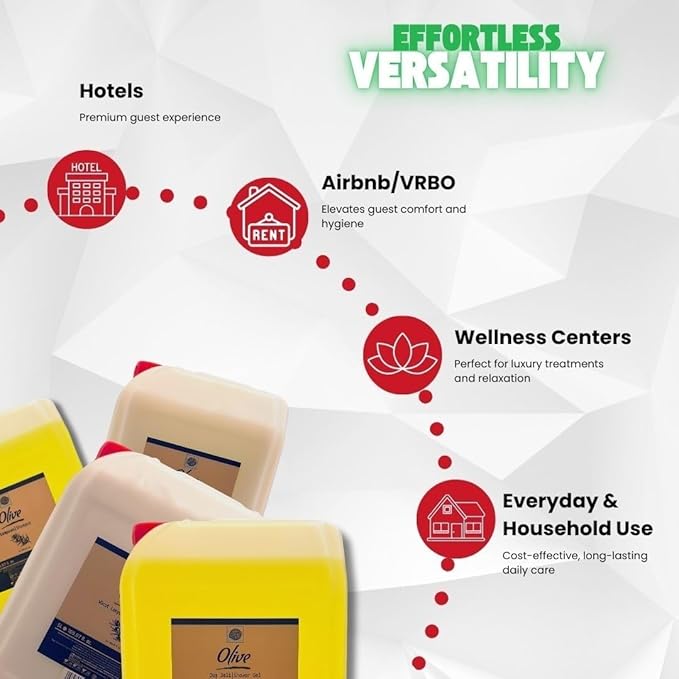 1.3-Gallon Each Bulk Shampoo, Shower Gel, Conditioner & Body Lotion Set – Olive Blossom Essence, Premium Ingredients, Made in Turkey – Ideal for Hotels, Rentals, Spas, Salons & Homes