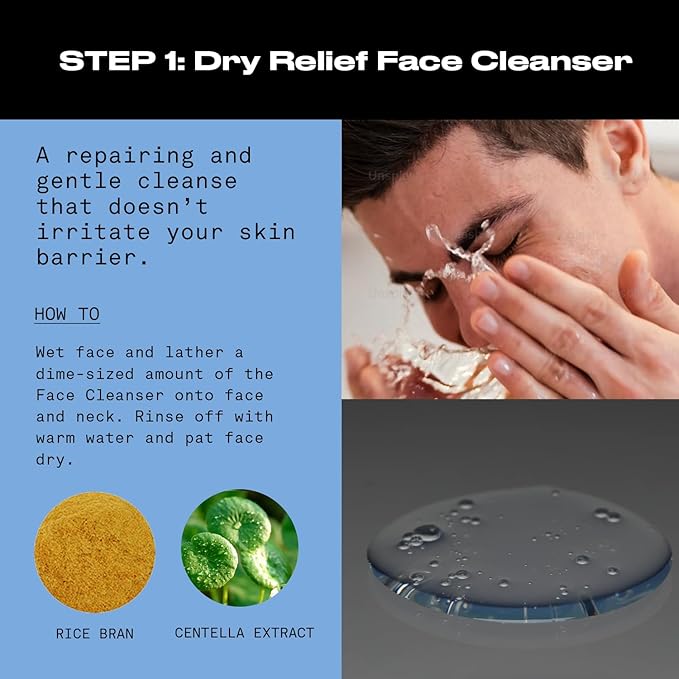 - NATURALLY SCENTED - The Dry Relief Face Wash is fragrance-free without a scent. The Dry Relief Face Lotion has a soothing and naturally-derived geranium leaf scent.