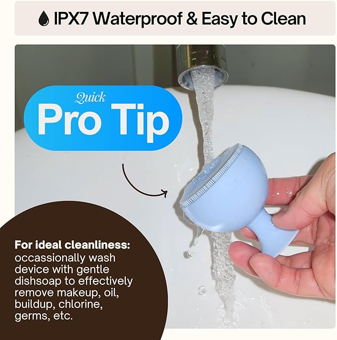 - READY FOR ANYWHERE GLOW: With IPX7 waterproof protection, this rechargeable face cleansing brush is perfect for shower use and built to last. Featuring a USB-C rechargeable battery and a secure travel lock, it’s designed for effortless beauty wherever you go