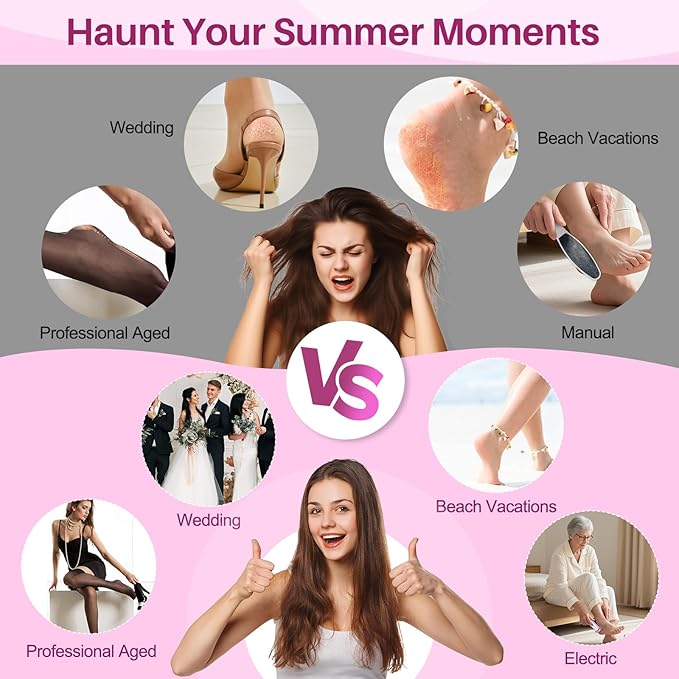 - 【Electric Foot Grinder for All Users】Suitable for men/women with rough heels, Perfect for the people who often wear high heels/ middle-aged and elderly/ love sports/ stand for a long time and work.diabetic-friendly design (gentle exfoliation), perfect for athletes, seniors, or anyone seeking soft, crack-free feet year-round.