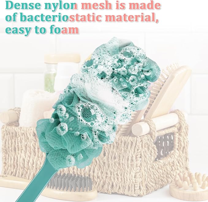 - 【High Quality Nylon Mesh & Handle】The back scrubber for shower is made of high quality nylon mesh, soft and flexible material handle. The mesh is very fine and can easily produce rich foam. Just use a little shower gel and soap to lather up and enjoy the comfort of showering, enjoy your skin massage.