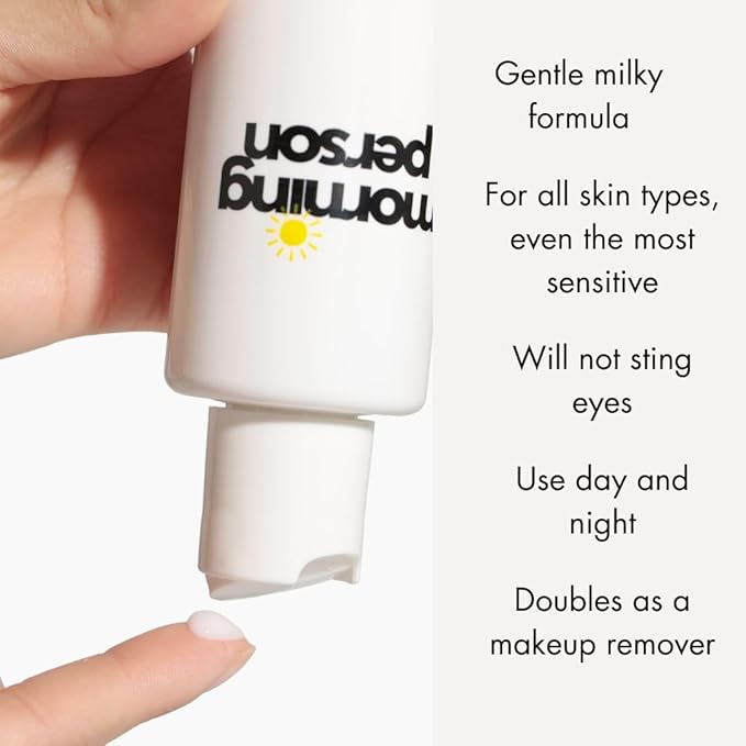 Morning Person Antioxidant Plant Protein Facial Cleanser - Calming And Soothing With Green Tea And Aloe Vera - Hydrating And De-Puffing - Sulfate and Paraben Free