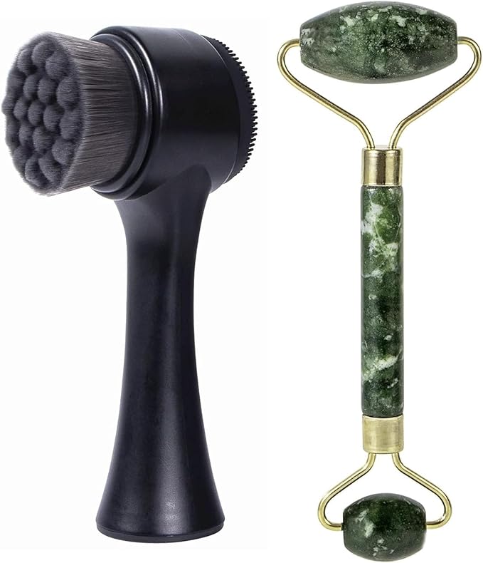 - MATERIAL - Facial cleansing brush is made of gentle soft bristles and food-grade silicone, skin-friendly, easy enough to exfoliate, gentle, massage and deep cleanse; our manual face wash brush designed with the ergonomic handle, easy and comfortable to hold, non-slip, easy to place and store. The addition of the Jade Face Roller, made from natural jade, complements the brush by soothing the skin and enhancing the cleansing process