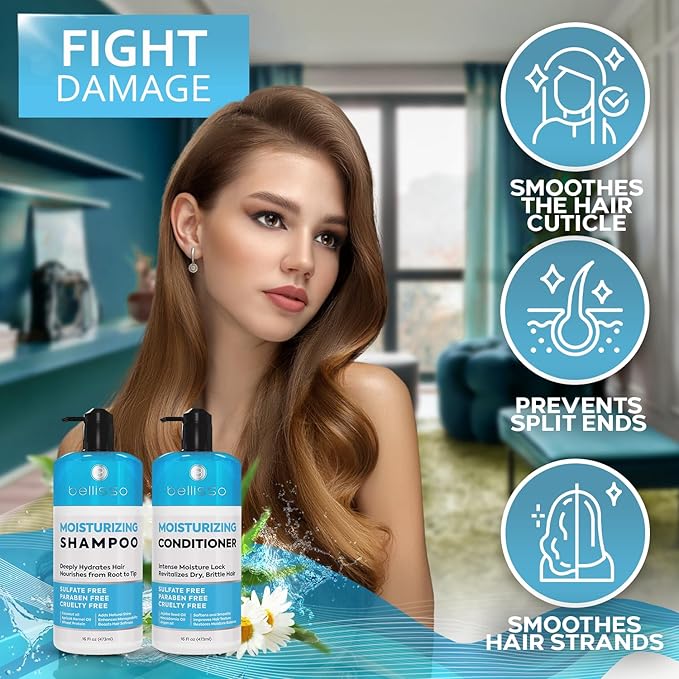 - RESCUES DRY HAIR: This moisturizing shampoo and conditioner set is designed to rescue parched hair by locking in essential moisture from the very first wash. Trusted as an effective dry hair shampoo and conditioner, Bellisso’s formula replenishes lost hydration and revives dull, brittle locks. Experience the rejuvenating power of our hydrating shampoo and conditioner that banishes dry hair.