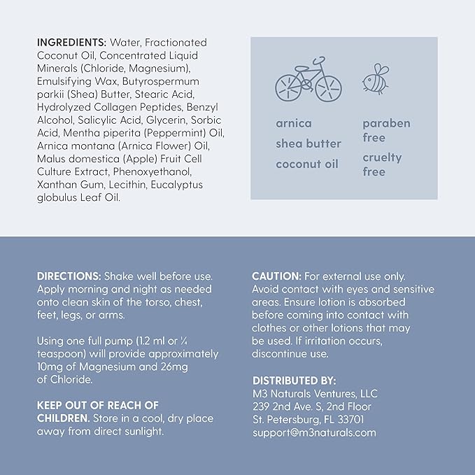 M3 Naturals Sore Muscle Magnesium Lotion for Kids & Magnesium Lotion for Babies with Arnica Oil | Soothes Tired Legs, Supports Restful Sleep, Moisturizes Sensitive Skin, 8 fl oz (237 mL)