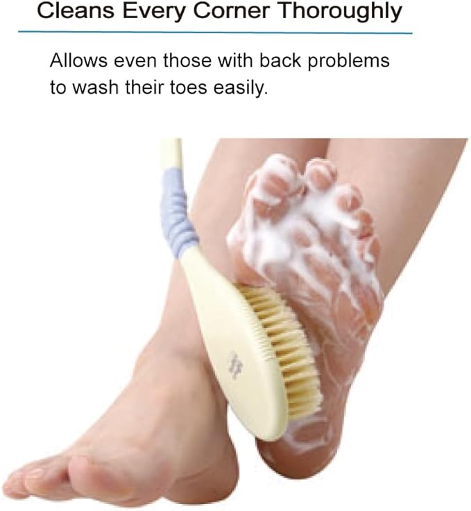 - [Long Handle Design] Features a long, non-slip handle for a secure grip, making it an excellent back brush for showering and a bath brush for easy reach and comfort, and includes a convenient strap for drying.
