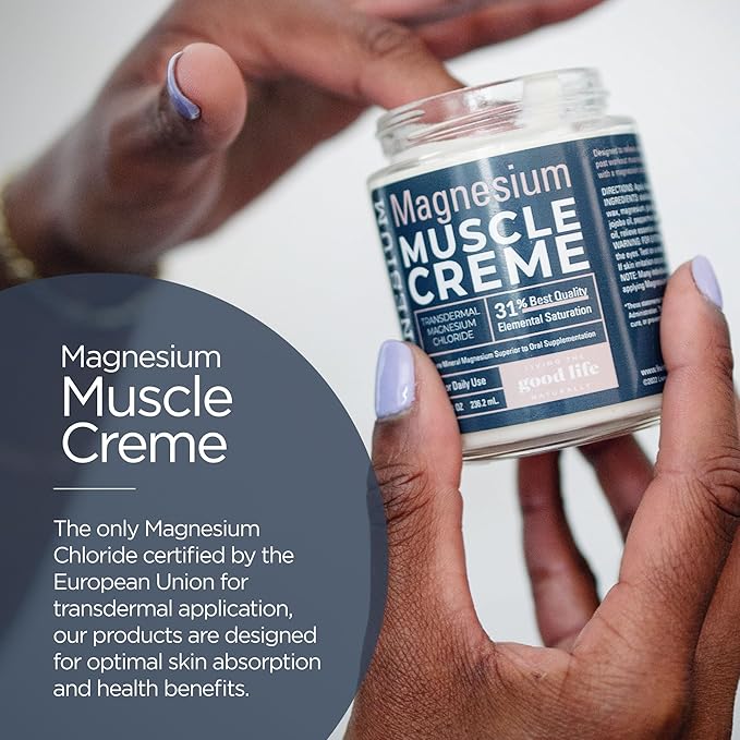 - PURE & NATURAL: Handmade in the USA, our Magnesium Muscle Creme is free from parabens and formaldehyde and made with pure Zechstein Inside Magnesium Chloride that is sourced directly from the Zechstein Sea and is never reconstituted from flakes. The only Magnesium Chloride certified by the European Union for transdermal application ensuring a safe and natural solution for your muscle recovery needs.
