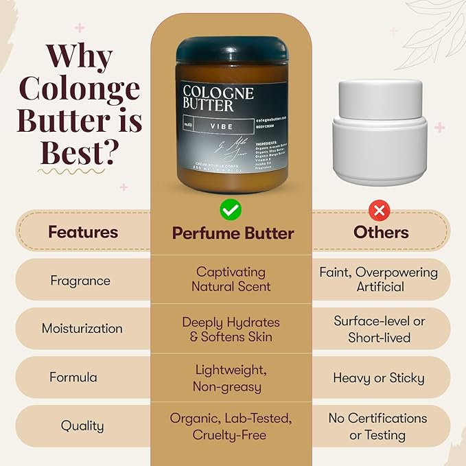 - Hydrate & Smell Incredible: Cologne Scented Body Butter is where skincare meets sophistication. This ultra-nourishing butter melts into your skin, delivering deep moisture while leaving behind a long-lasting scent. Elevate your self-care effortlessly