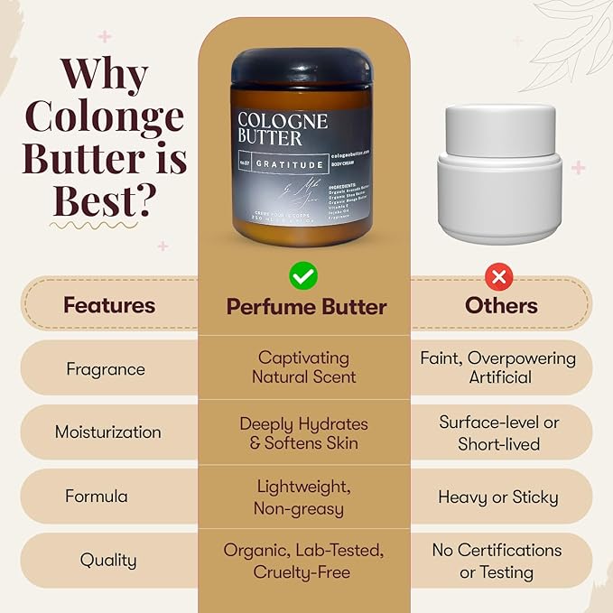 - Hydrate & Smell Incredible: Cologne Scented Body Butter is where skincare meets sophistication. This ultra-nourishing butter melts into your skin, delivering deep moisture while leaving behind a long-lasting scent. Elevate your self-care effortlessly
