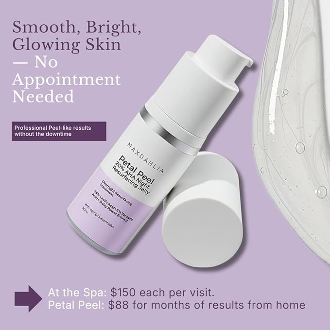 MAXDAHLIA Petal Peel - 20% AHA Serum | Mandelic & Lactic Acid | Resurfacing & Renewing Overnight Treatment for Dark Spots, Uneven Skin Tone & Acne Scar Remover