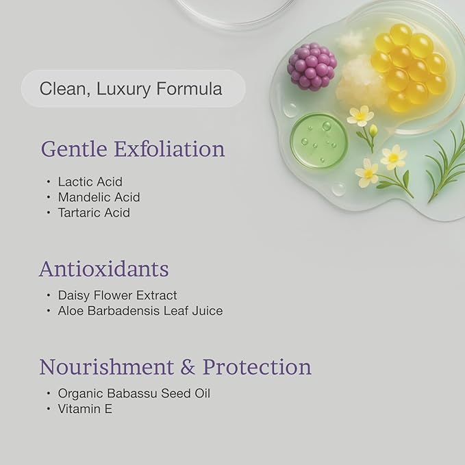 - GENTLE & HYDRATING FORMULA: Experience a gentle chemical peel thatβs suitable for all skin types. Infused with soothing aloe vera and daisy flower extract, this lactic acid serum delivers deep hydration while providing effective exfoliation, leaving your skin feeling soft, calm, and never dry or irritated.