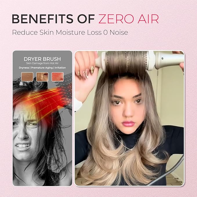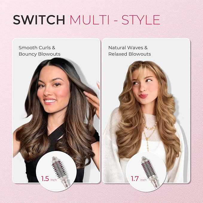 - DAMAGE WORRY-FREE: With dual PTC heaters, the hot brush styler heats up in just 20 seconds and delivers consistent, precise heat to protect your hair from excessive damage. Each side of the brush features heated hard bristles, maintaining a consistent barrel temperature to deliver the ideal heat for your hair type. Additionally, the built-in temperature memory function makes styling even easier.