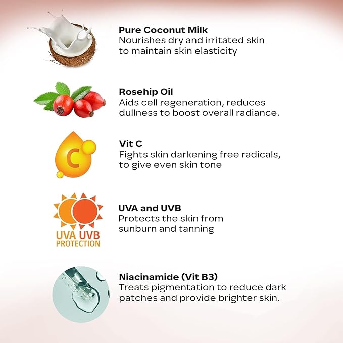 - Enriched with pure Coconut Milk & 100% Natural moisturisers. Keeps the skin hydrated for 72 hours for soft supple skin