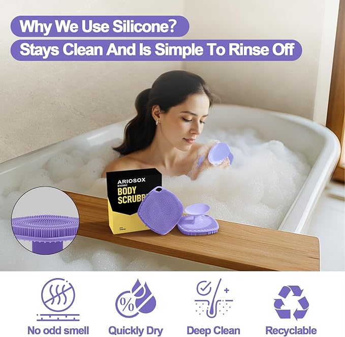 - Gentle Like a Hand: The ARIOSOX Silicone Body Scrubber features soft silicone bristles that provide the right balance of firmness. Itβs cleaner than traditional loofahs or sponges, ensuring itβs soft enough to avoid irritation while still effective at cleaning and exfoliating. Every time you use it, it feels like receiving a soothing massage