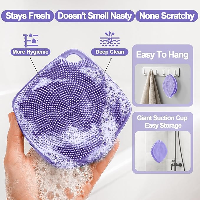 Silicone Body Scrubber, Gentle Texture Exfoliating Body Scrubber for Men and Women On Sensitive Skin, Soft Scrubber Produces Rich Form and Builds Up Lather, Getting a Deep Skin Clean (Purple)