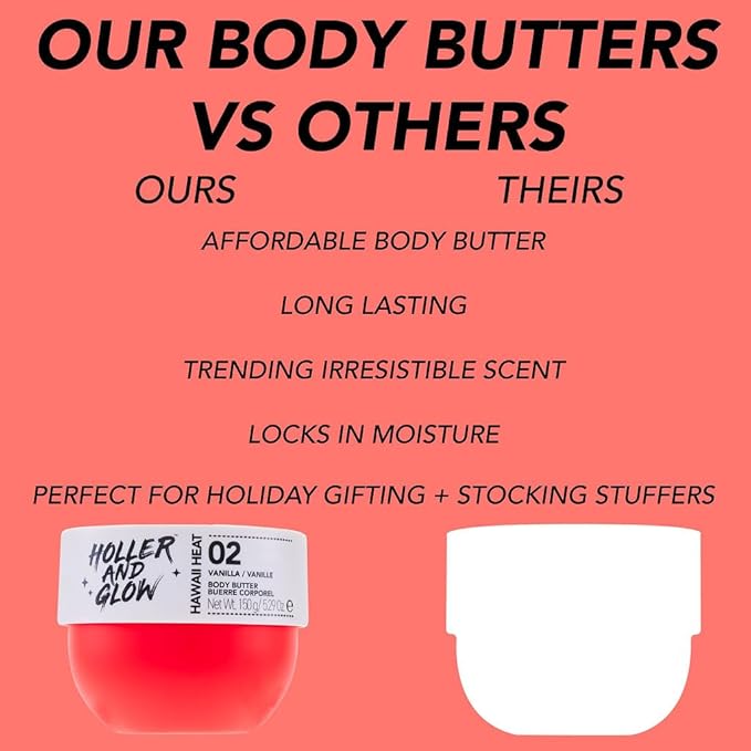 Holler And Glow Hawaii Heat Vanilla Body Butter, Body Butter For Women, Smells Good, Body Lotion For Extremely Dry Skin, Moisturizing, Nourishing, Shea Butter, Peony, Amber Scented, 5.29 Oz