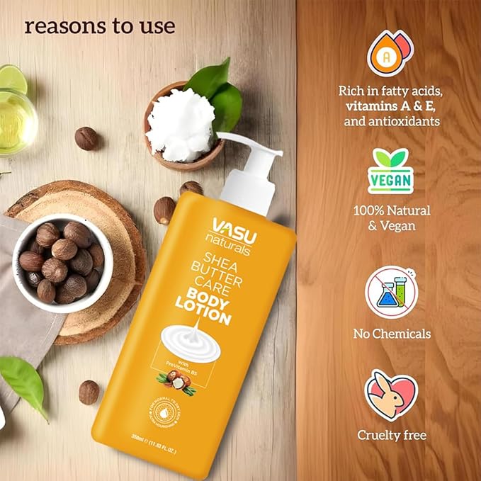 Vasu Naturals Shea Butter face moisturizer - Hydrating body lotion, Long-Lasting hand cream for Dry Skin, Lightweight face lotion, Coconut Oil hand lotion for skincare 11.83 fl oz each (Pack of 2)