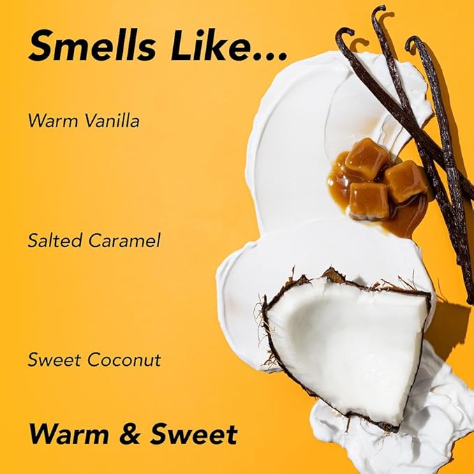 - Long Lasting Scent - Infused with irresistible notes of salted caramel, warming vanilla and sweet coconut, this fragrance captures the essence of Miamiβs sun-kissed shores. Shea Butter helps firm skin's appearance for a healthy, hydrated glow